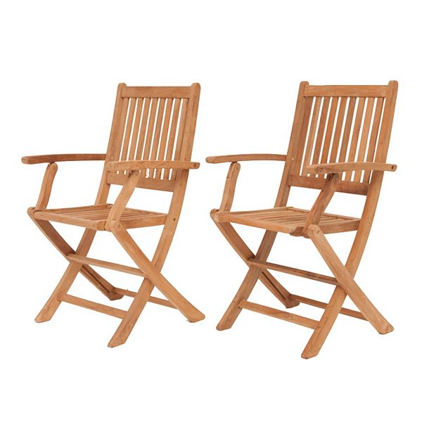 Acacia wood lends luxurious appeal in this foldable slatted indoor/outdoor chair. Teakcraft teak folding arm chair, 2 piece set, fully assembled, wooden outdoor chair or indoor, wood lounge chair, patio dining chairs, themillenim. Includes 2 outdoor wooden folding chairs Color styles might differ because of the wood we utilize strong indonesian premium grade teak wood to develop. The folding & reclining teak armchair is precision engineered for long lasting durability resulting in a beautiful teak wood chair that sits firm.